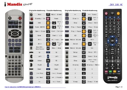 Diese Fernbedienung erfüllt alle Funktionen der Originalfernbedienung: