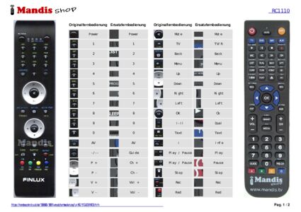 Ein Dokument ist enthalten, um die Verwendung der neuen Fernbedienung zu erleichtern, indem es die Tastenbelegung zeigt.