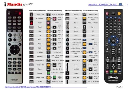 Im Folgenden zeigen wir Ihnen die Zuordnung jedes einzelnen Knopfes der Originalfernbedienung zu der Taste, die dieselbe Funktion auf der Ersatzfernbedienung ausführt. In einigen Fällen müssen Sie möglicherweise die UMSCHALT-Taste drücken, bevor Sie eine andere Taste drücken, um bestimmte Aktionen auszuführen. Diese zusätzlichen Funktionen werden oft wenig genutzt und dienen dazu, das Verständnis der Ersatzfernbedienung zu erleichtern oder weil die Originalfernbedienung mehr Tasten hat als das entsprechende Modell.