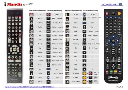 Ein Dokument ist enthalten, um die Verwendung der neuen Fernbedienung zu erleichtern, indem es die Tastenbelegung zeigt.
