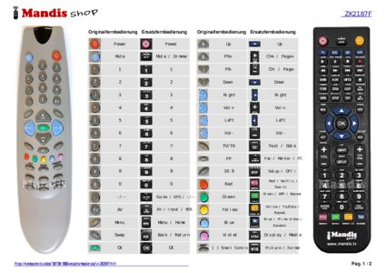 Ein Dokument ist enthalten, um die Verwendung der neuen Fernbedienung zu erleichtern, indem es die Tastenbelegung zeigt.