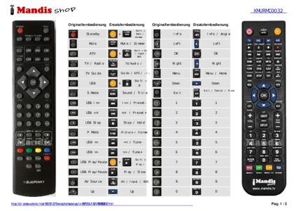Ein Dokument ist enthalten, um die Verwendung der neuen Fernbedienung zu erleichtern, indem es die Tastenbelegung zeigt.