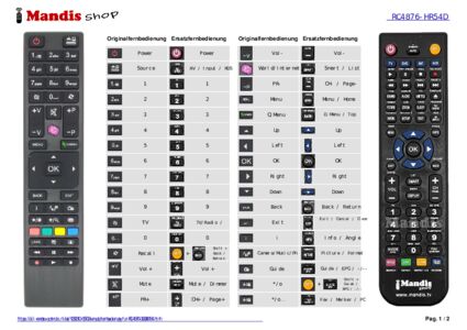 Ein Dokument ist enthalten, um die Verwendung der neuen Fernbedienung zu erleichtern, indem es die Tastenbelegung zeigt.