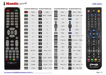 Ein Dokument ist enthalten, um die Verwendung der neuen Fernbedienung zu erleichtern, indem es die Tastenbelegung zeigt.