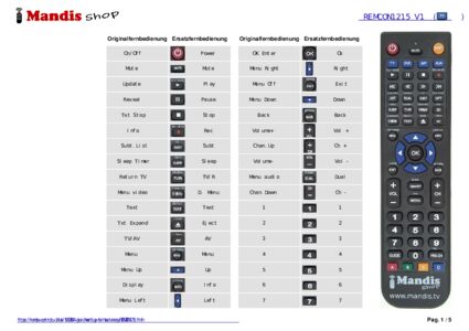 Ein Dokument ist enthalten, um die Verwendung der neuen Fernbedienung zu erleichtern, indem es die Tastenbelegung zeigt.