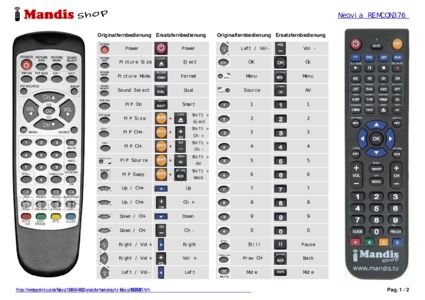 Ein Dokument ist enthalten, um die Verwendung der neuen Fernbedienung zu erleichtern, indem es die Tastenbelegung zeigt.