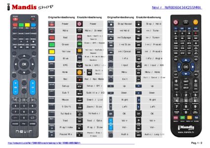 Ein Dokument ist enthalten, um die Verwendung der neuen Fernbedienung zu erleichtern, indem es die Tastenbelegung zeigt.