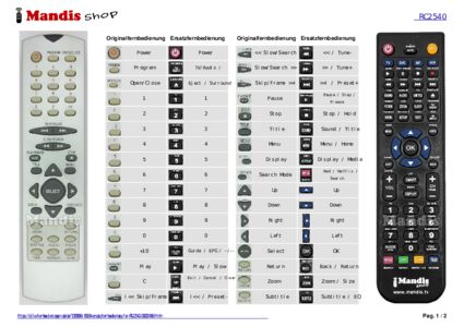 Ein Dokument ist enthalten, um die Verwendung der neuen Fernbedienung zu erleichtern, indem es die Tastenbelegung zeigt.