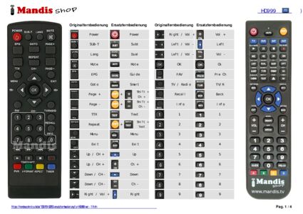 Ein Dokument ist enthalten, um die Verwendung der neuen Fernbedienung zu erleichtern, indem es die Tastenbelegung zeigt.