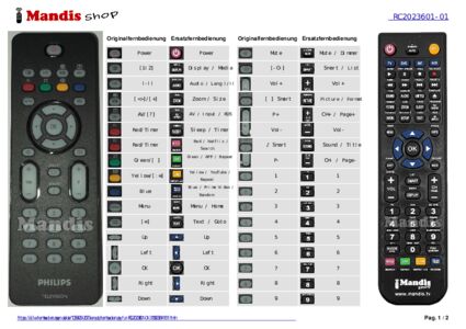 Ein Dokument ist enthalten, um die Verwendung der neuen Fernbedienung zu erleichtern, indem es die Tastenbelegung zeigt.