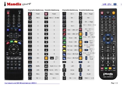 Ein Dokument ist enthalten, um die Verwendung der neuen Fernbedienung zu erleichtern, indem es die Tastenbelegung zeigt.