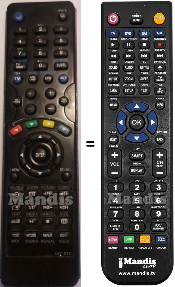 Diese Fernbedienung ersetzt Ihre Nordmende (VST-DTV) in vollem Umfang und bietet alle Funktionen des Originals.