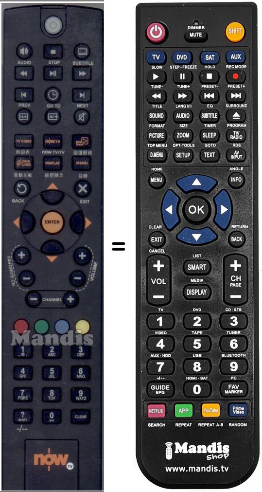 Fernbedienung, die das Original und die Gesamtheit seiner Funktionen, vollständig ersetzt. Es handelt sich jedoch nicht um eine Universalfernbedienung sondern um eine Fernbedienung die das Original ersetzt. Sie erhalten eine nach Einlegen der Batterien sofort einsatzbereite Fernbedienung. Jegliches Programmieren entfällt. Wir geben umfassende Garantie dafür, dass diese Fernbedienung alle Funktionen der Originalfernbedienung erfüllt.