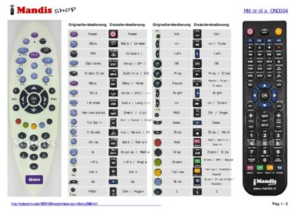 Ein Dokument ist enthalten, um die Verwendung der neuen Fernbedienung zu erleichtern, indem es die Tastenbelegung zeigt.