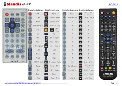 Diese Fernbedienung ersetzt Ihre RC-6011 in vollem Umfang und bietet alle Funktionen des Originals.