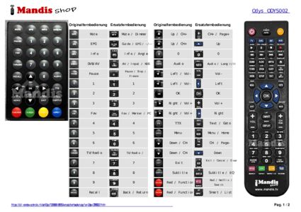 Ein Dokument ist enthalten, um die Verwendung der neuen Fernbedienung zu erleichtern, indem es die Tastenbelegung zeigt.