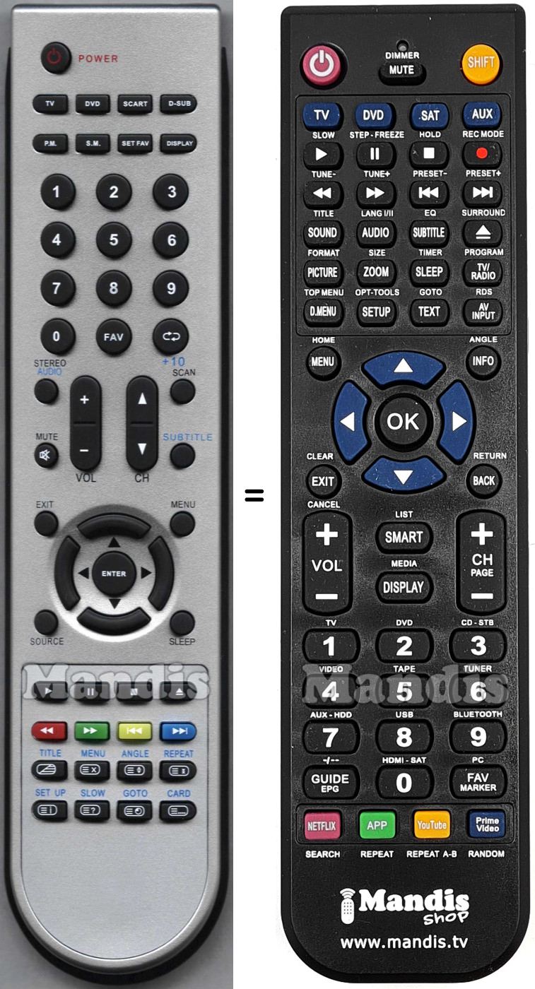 Es handelt sich jedoch nicht um eine Universalfernbedienung sondern um eine Fernbedienung die das Original ersetzt.