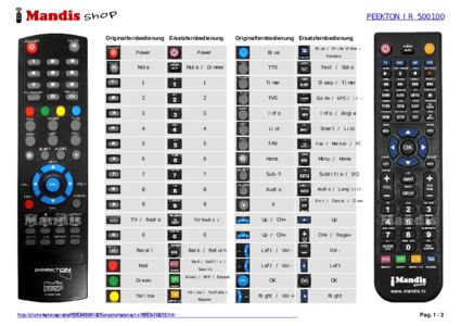 Ein Dokument ist enthalten, um die Verwendung der neuen Fernbedienung zu erleichtern, indem es die Tastenbelegung zeigt.