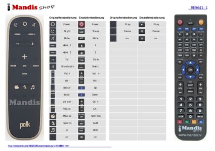 Diese Fernbedienung ersetzt Ihre Polk (RE9641-1) in vollem Umfang und bietet alle Funktionen des Originals.