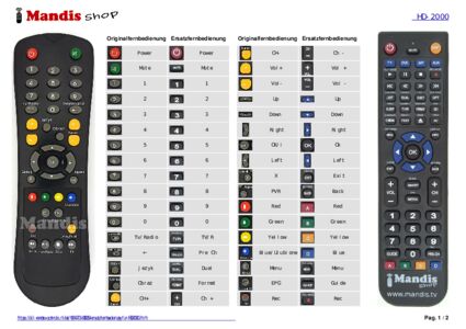 Ein Dokument ist enthalten, um die Verwendung der neuen Fernbedienung zu erleichtern, indem es die Tastenbelegung zeigt.