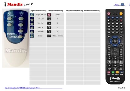 Ein Dokument ist enthalten, um die Verwendung der neuen Fernbedienung zu erleichtern, indem es die Tastenbelegung zeigt.