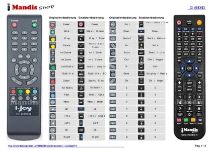Ein Dokument ist enthalten, um die Verwendung der neuen Fernbedienung zu erleichtern, indem es die Tastenbelegung zeigt.