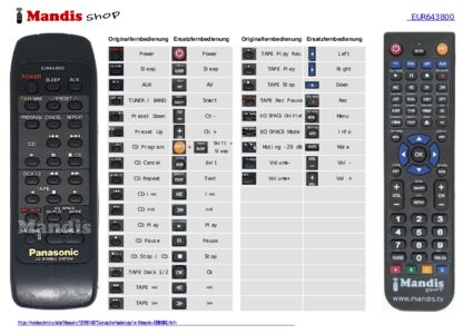 Diese Fernbedienung ersetzt Ihre EUR643800 in vollem Umfang und bietet alle Funktionen des Originals.