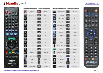 Ein Dokument ist enthalten, um die Verwendung der neuen Fernbedienung zu erleichtern, indem es die Tastenbelegung zeigt.