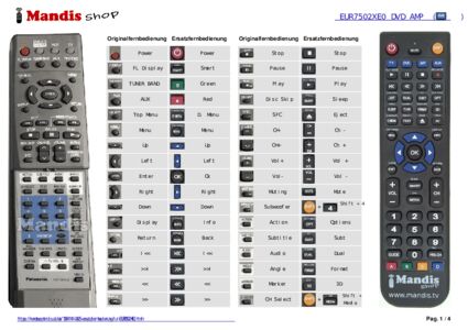 Diese Fernbedienung ersetzt Ihre EUR7502X20 in vollem Umfang und bietet alle Funktionen des Originals.