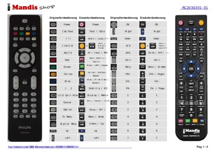 Ein Dokument ist enthalten, um die Verwendung der neuen Fernbedienung zu erleichtern, indem es die Tastenbelegung zeigt.