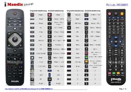 Im Folgenden zeigen wir Ihnen die Zuordnung jedes einzelnen Knopfes der Originalfernbedienung zu der Taste, die dieselbe Funktion auf der Ersatzfernbedienung ausführt. In einigen Fällen müssen Sie möglicherweise die UMSCHALT-Taste drücken, bevor Sie eine andere Taste drücken, um bestimmte Aktionen auszuführen. Diese zusätzlichen Funktionen werden oft wenig genutzt und dienen dazu, das Verständnis der Ersatzfernbedienung zu erleichtern oder weil die Originalfernbedienung mehr Tasten hat als das entsprechende Modell.