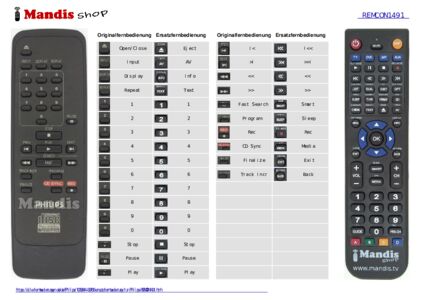 Im Folgenden zeigen wir Ihnen die Zuordnung jedes einzelnen Knopfes der Originalfernbedienung zu der Taste, die dieselbe Funktion auf der Ersatzfernbedienung ausführt. In einigen Fällen müssen Sie möglicherweise die UMSCHALT-Taste drücken, bevor Sie eine andere Taste drücken, um bestimmte Aktionen auszuführen. Diese zusätzlichen Funktionen werden oft wenig genutzt und dienen dazu, das Verständnis der Ersatzfernbedienung zu erleichtern oder weil die Originalfernbedienung mehr Tasten hat als das entsprechende Modell.