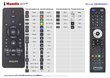 Ein Dokument ist enthalten, um die Verwendung der neuen Fernbedienung zu erleichtern, indem es die Tastenbelegung zeigt.
