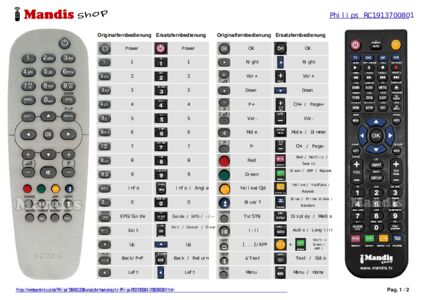 Ein Dokument ist enthalten, um die Verwendung der neuen Fernbedienung zu erleichtern, indem es die Tastenbelegung zeigt.