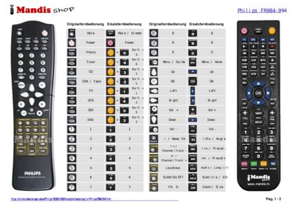Ein Dokument ist enthalten, um die Verwendung der neuen Fernbedienung zu erleichtern, indem es die Tastenbelegung zeigt.