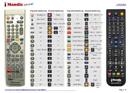 Diese Fernbedienung ersetzt Ihre VXX2969 in vollem Umfang und bietet alle Funktionen des Originals.