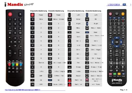Ein Dokument ist enthalten, um die Verwendung der neuen Fernbedienung zu erleichtern, indem es die Tastenbelegung zeigt.