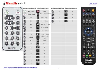 Ein Dokument ist enthalten, um die Verwendung der neuen Fernbedienung zu erleichtern, indem es die Tastenbelegung zeigt.
