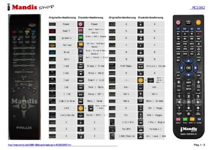 Ein Dokument ist enthalten, um die Verwendung der neuen Fernbedienung zu erleichtern, indem es die Tastenbelegung zeigt.