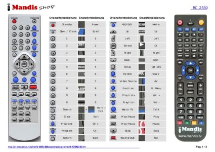 Diese Fernbedienung ersetzt Ihre RC 2530 (30044500) in vollem Umfang und bietet alle Funktionen des Originals.