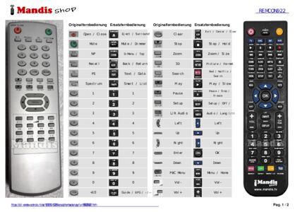 Ein Dokument ist enthalten, um die Verwendung der neuen Fernbedienung zu erleichtern, indem es die Tastenbelegung zeigt.