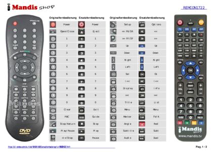 Diese Fernbedienung ersetzt Ihre REMCON1722 in vollem Umfang und bietet alle Funktionen des Originals.