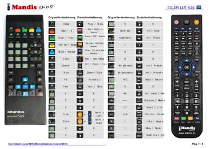 Ein Dokument ist enthalten, um die Verwendung der neuen Fernbedienung zu erleichtern, indem es die Tastenbelegung zeigt.