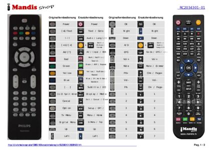 Ein Dokument ist enthalten, um die Verwendung der neuen Fernbedienung zu erleichtern, indem es die Tastenbelegung zeigt.