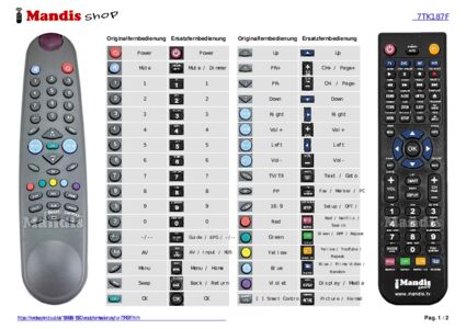 Ein Dokument ist enthalten, um die Verwendung der neuen Fernbedienung zu erleichtern, indem es die Tastenbelegung zeigt.