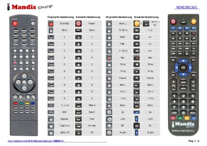 Ein Dokument ist enthalten, um die Verwendung der neuen Fernbedienung zu erleichtern, indem es die Tastenbelegung zeigt.