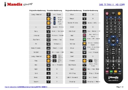 Ein Dokument ist enthalten, um die Verwendung der neuen Fernbedienung zu erleichtern, indem es die Tastenbelegung zeigt.