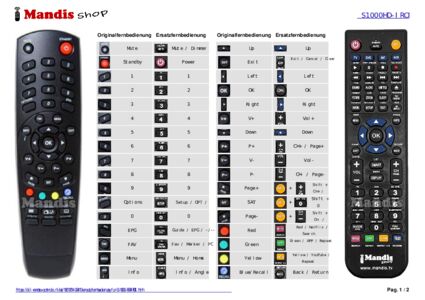 Ein Dokument ist enthalten, um die Verwendung der neuen Fernbedienung zu erleichtern, indem es die Tastenbelegung zeigt.