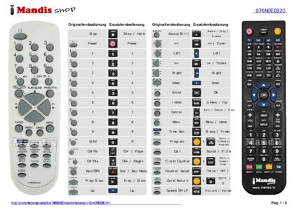Diese Fernbedienung ersetzt Ihre 076N0ED190 in vollem Umfang und bietet alle Funktionen des Originals.