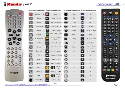 Ein Dokument ist enthalten, um die Verwendung der neuen Fernbedienung zu erleichtern, indem es die Tastenbelegung zeigt.